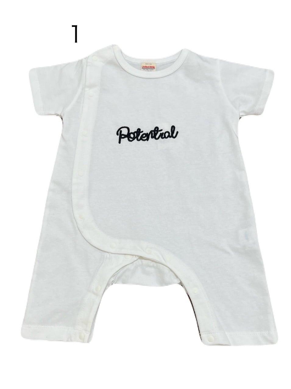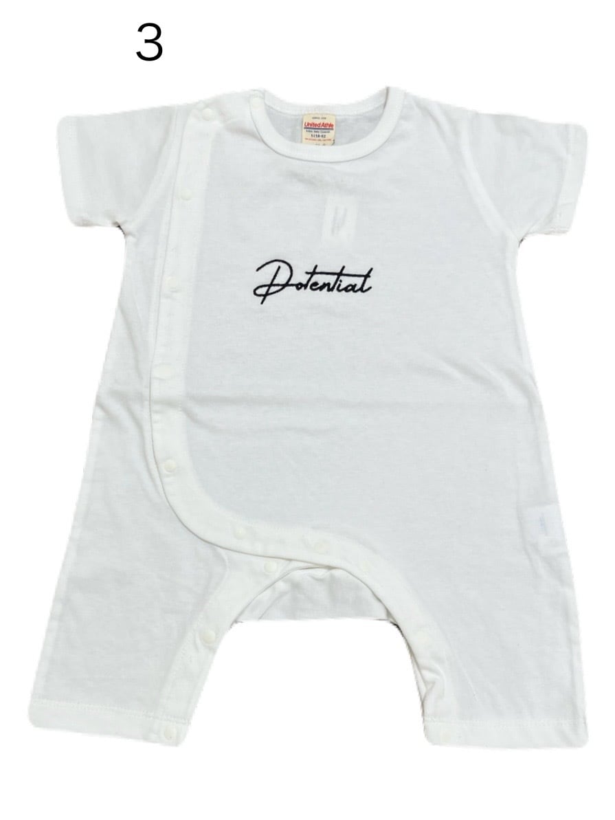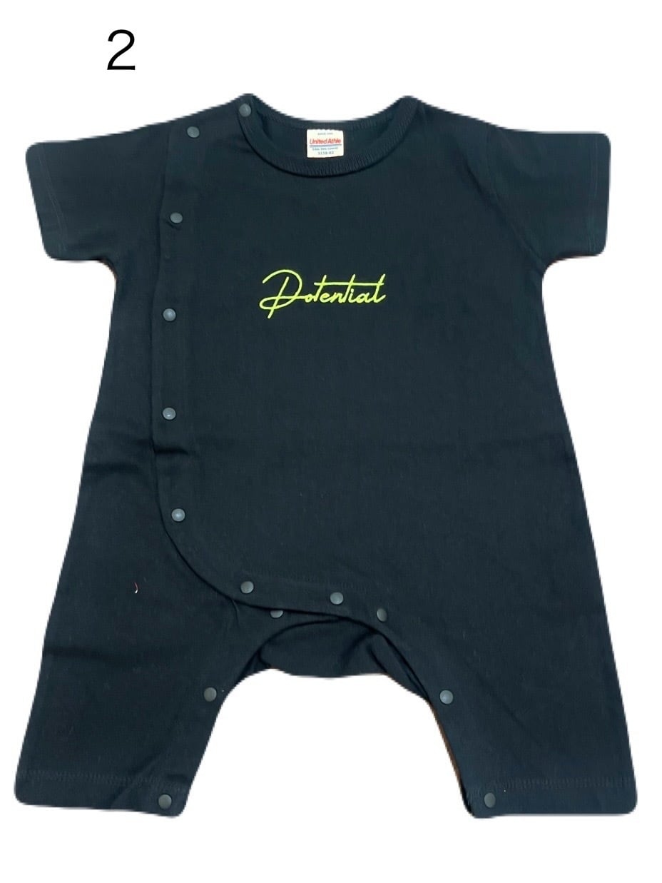 シンプルで洗練されたデザインの「POTENTIAL」ロンパース。