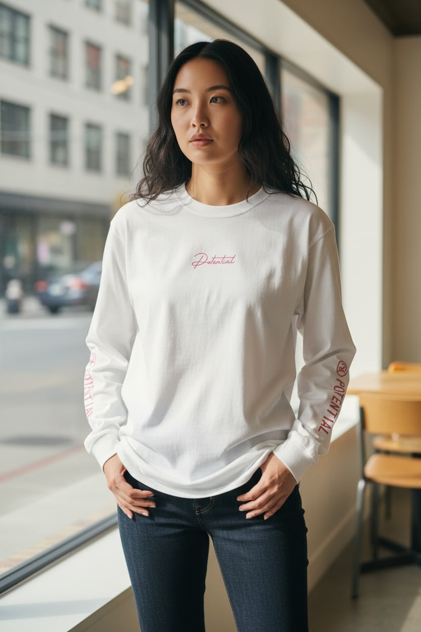 POTENTIAL | 細ポテ | ロンT C 白/(文字色)ピンク