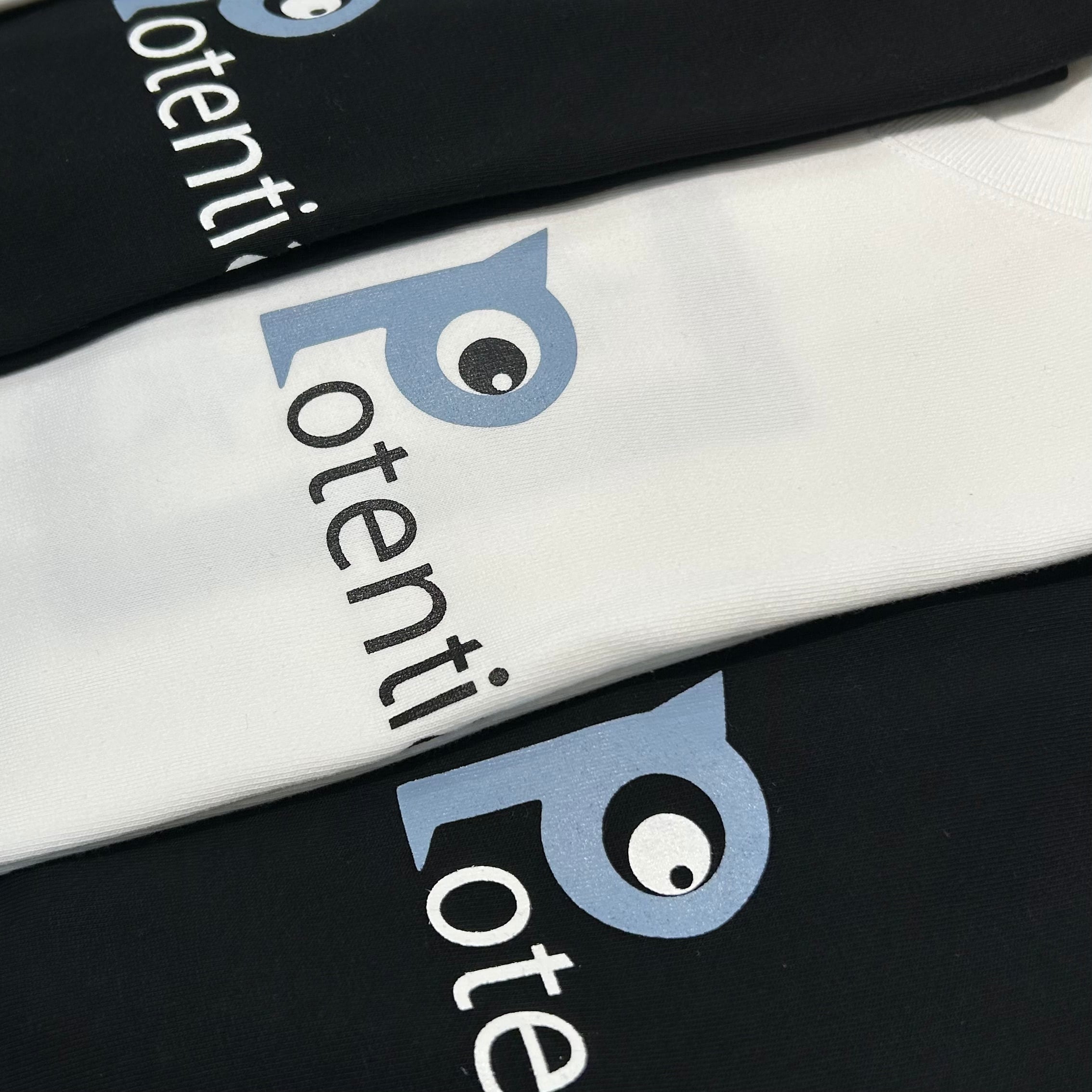 POTENTIALのパーマンデザインが映えるシンプルなホワイトTシャツ。