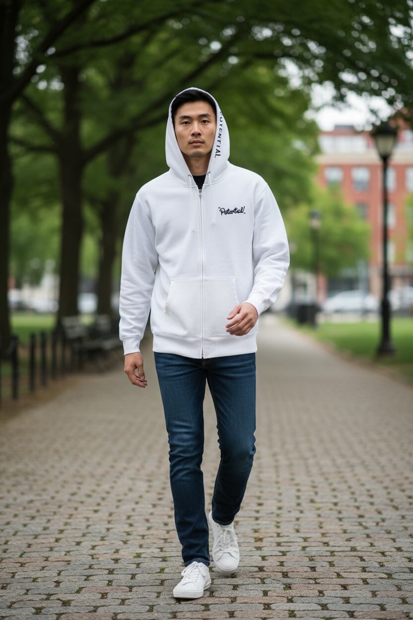着脱のしやすさと実用性を重視した、POTENTIALのジップアップパーカー。