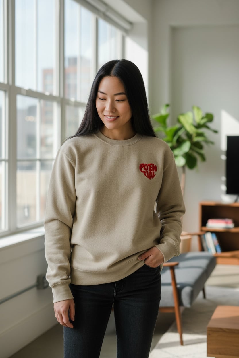POTENTIAL | ハートロゴ | 裏起毛スウェット サンドベージュ