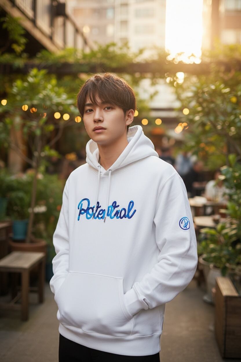 POTENTIAL | 柄ポテ 青迷彩ロゴ | パイルパーカー 白
