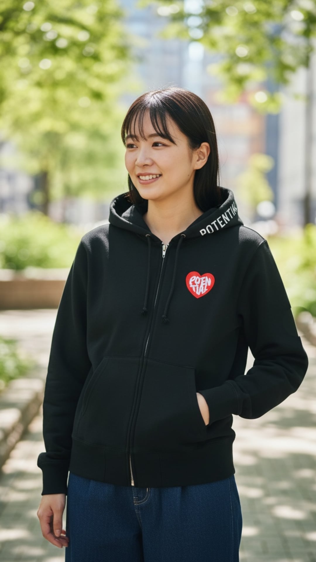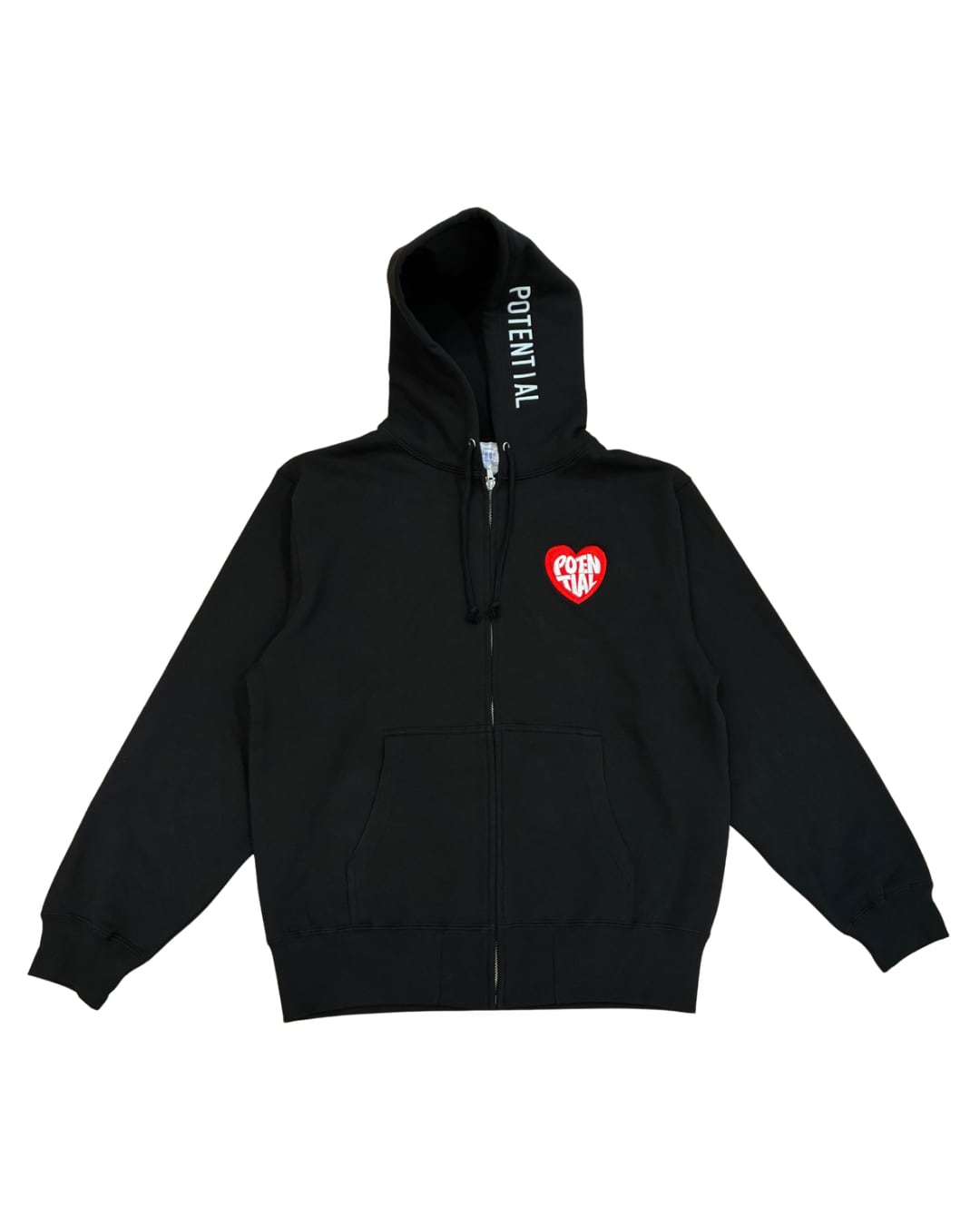 POTENTIAL | ハートワッペン | ジップパーカー ブラック