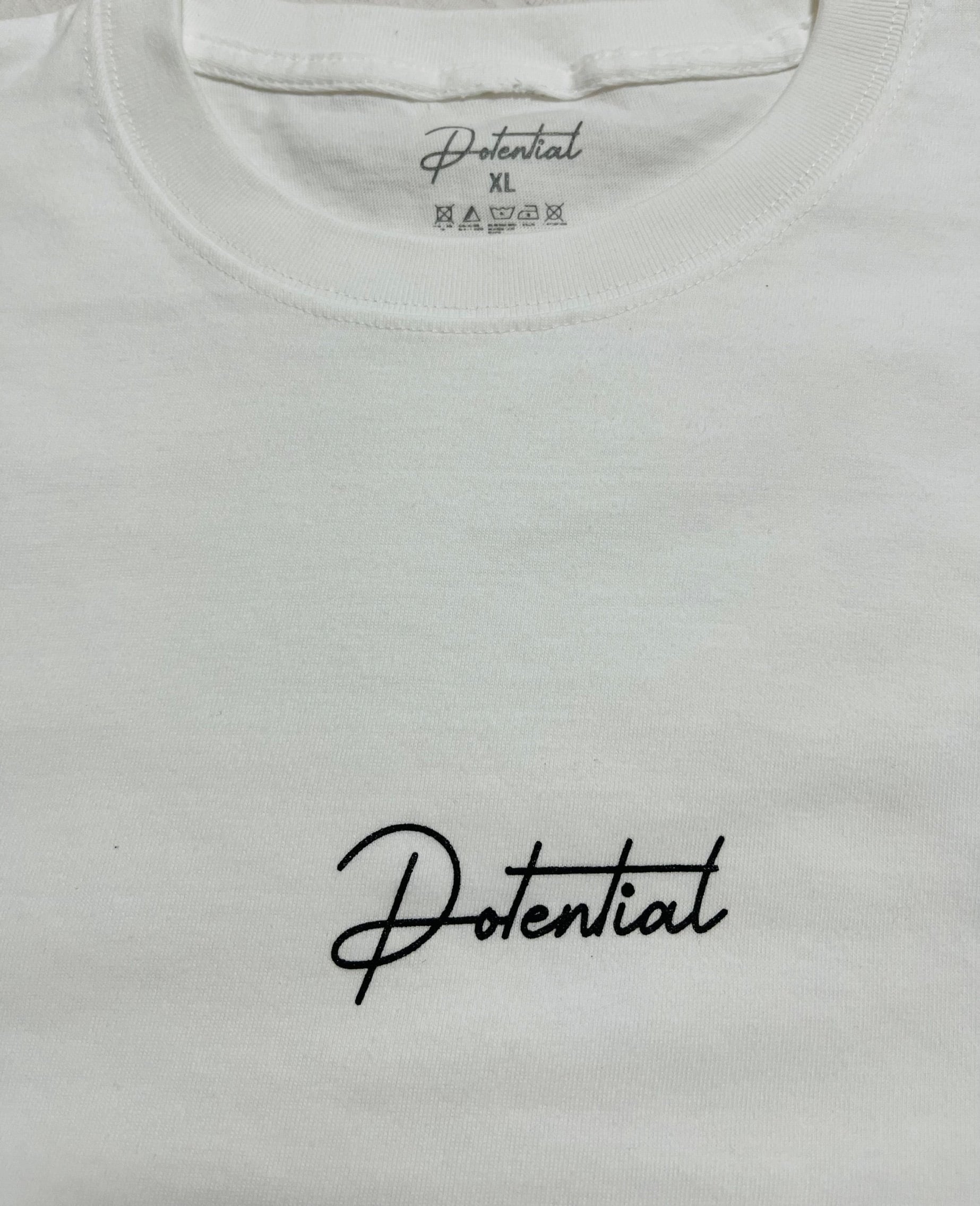 POTENTIALロゴを胸と腕に、配置したシンプルなロンT。